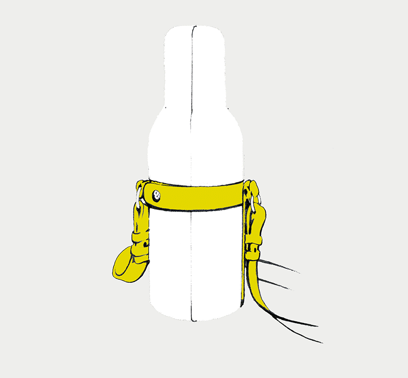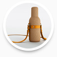 Il suffit de poser la bouteille (75 cl, 50 cl, 37,5 cl) dans une des coques à la verticale, de la recouvrir avec la seconde coque. Le harnais souple sécurise le tout, avec une simple pression sur chaque bouton. A porter simplement dans le dos ou à l’épaule, avec une bandoulière réglable , ou à l’épaule, à la main, sur le guidon d’un vélo avec la poignée courte. D'autres questions, cliquez ici.